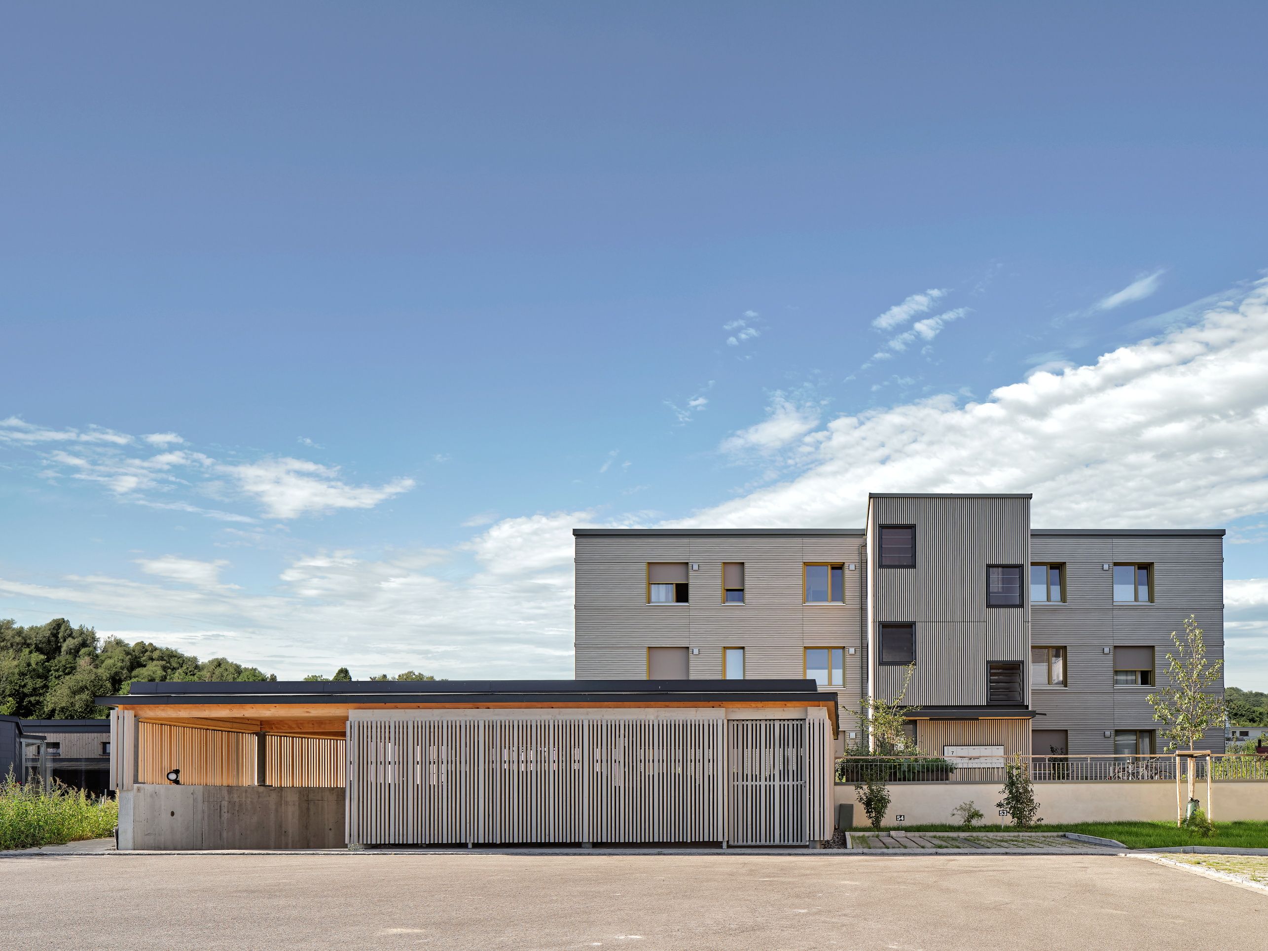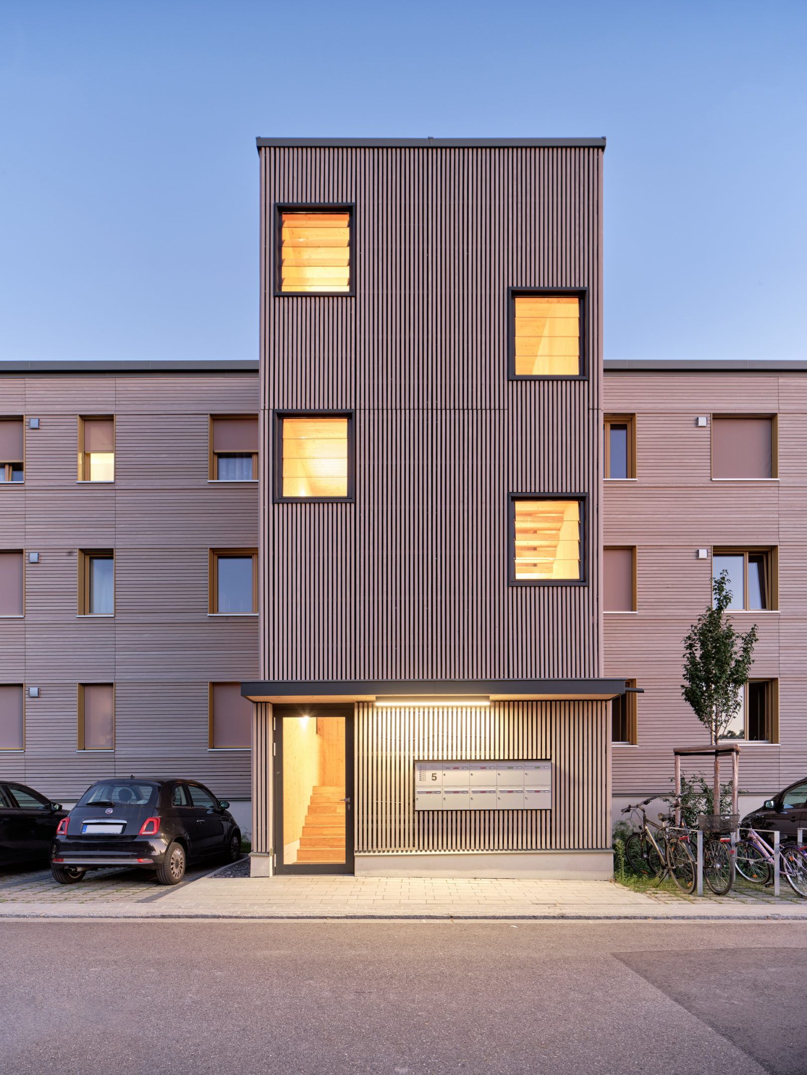 Die vier Wohngebäude werden in ökologischer, serieller Holzmassivbauweise errichtet. Dabei wird der KFW Effizienzhaus 40 Plus-Standard erreicht. Durch konsequente Nutzung des klimapositiven Baustoffes Holzes und einem innovativen Energiekonzept einschließend eines Mieterstrommodells, konnte in Zusammenarbeit mit Stahl+Weiß PartGmbB eine CO2-Bilanzierung vorgenommen werden, die den richtungsweißenden Charakter des Gebäudes belegt: Nach vier Jahren Nutzung ist die CO2-Bilanz durch die Produktion an regenerativer Energie ausgeglichen, nach neun Jahren Nutzung ist der Betrieb CO2-neutral und die Wohnanlage produziert mehr Energie als sie in Erstellung und Betrieb benötigt.